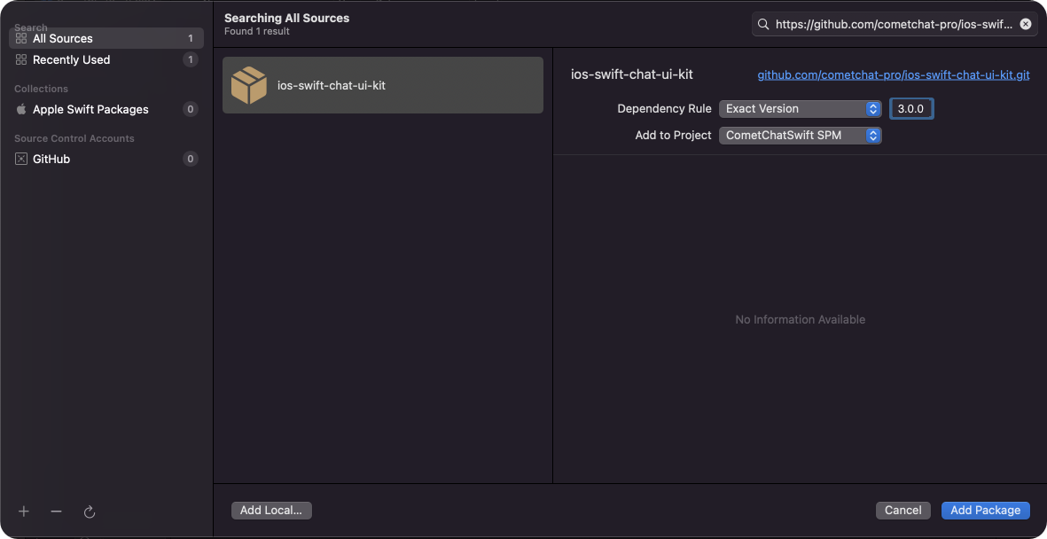 4.0.0 is compatible with 4.0.0 version of CometChatSDKSwift Package Manager