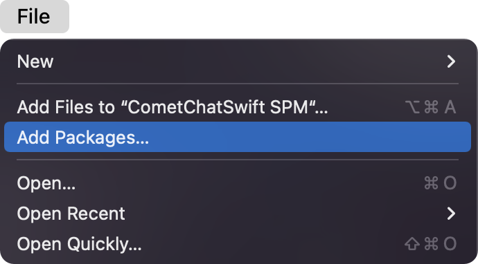 - Go to your Swift Package Manager’s File tab and select Add Packages.