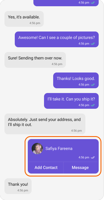 - Header view: This displays the sender’s name and is especially useful in group chats where multiple users are sending messages.