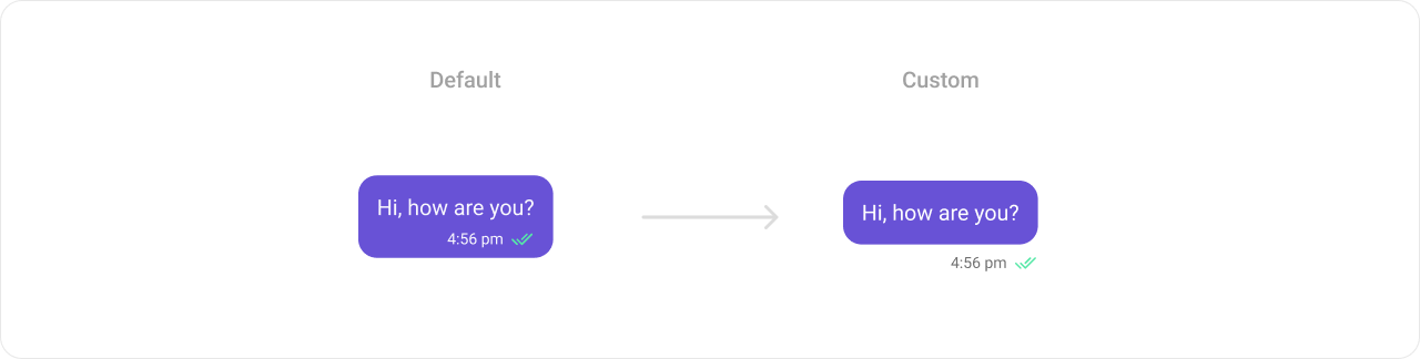 .setFooterView()method allows you to assign a custom Footer view to the MessageBubble. By default, it displays the receipt and timestamp.