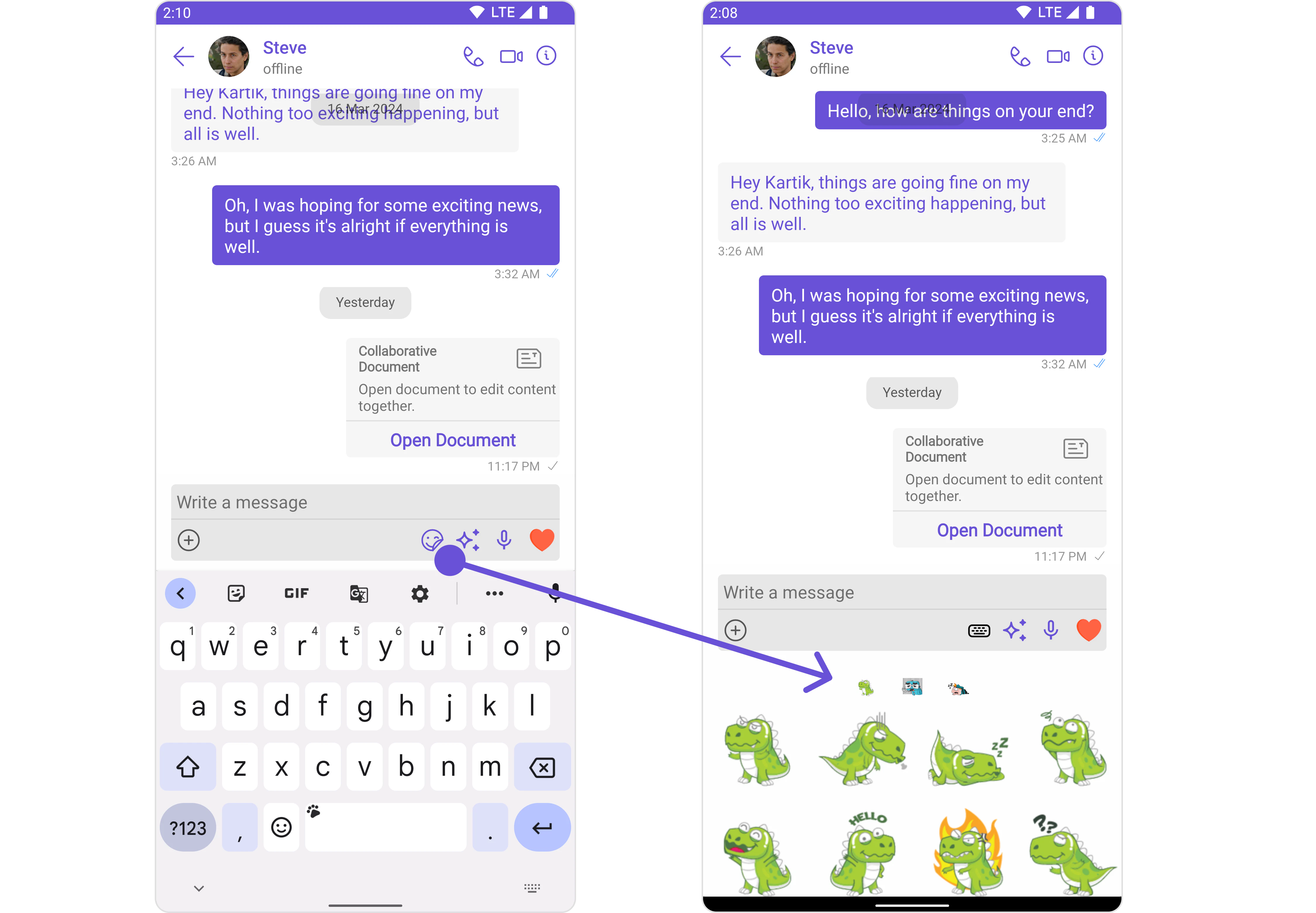 The Stickers extension allows users to express their emotions more creatively. It adds a much-needed fun element to the chat by allowing users to send various pre-designed stickers. For a comprehensive understanding and guide on implementing and using the Sticker Extension, refer to our specific guide on the Sticker Extension. Once you have successfully activated the Sticker Extension from your CometChat Dashboard, the feature will automatically be incorporated into the Message Composer component of UI Kits.