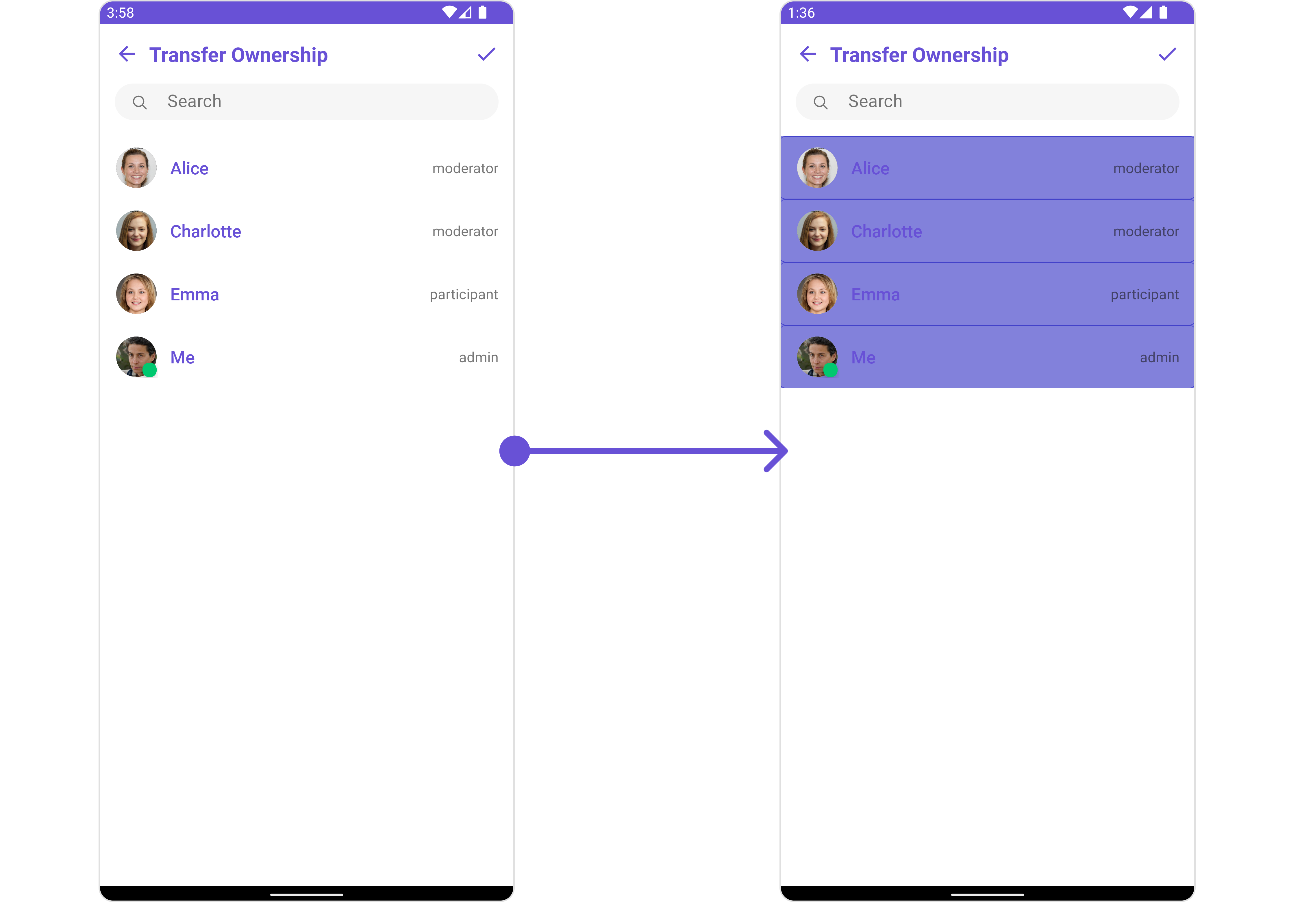 To fit your app’s design requirements, you can customize the appearance of the Transfer Ownership component. We provide exposed methods that allow you to modify the experience and behavior according to your specific needs.Style