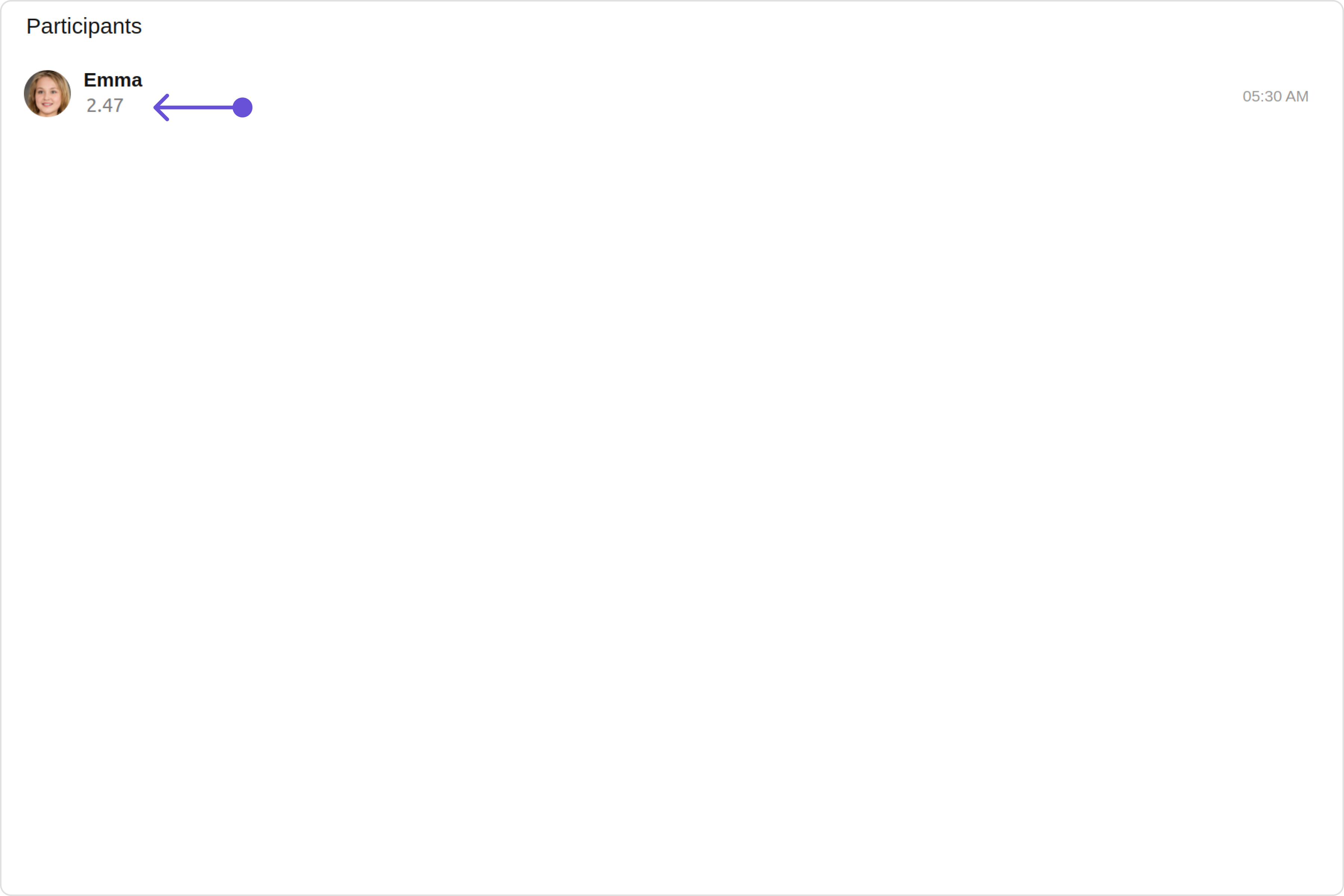 To customize the appearance, you can assign aCallLogParticipantsStyle object to the Call Log Participants component.