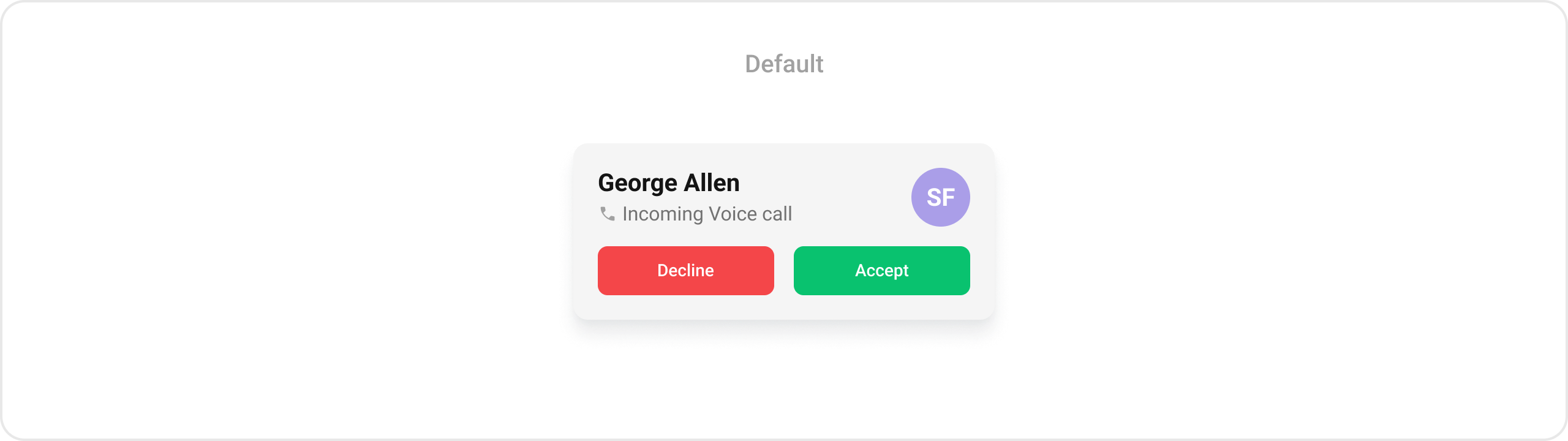 These are a set of small functional customizations that allow you to fine-tune the overall experience of the widget. With these, you can change text, set custom icons, and toggle the visibility of UI elements. Example In this example, we’re enhancing the interface by customizing the accept and decline button icons. By setting custom icons for both the accept and decline buttons, users can enjoy a more visually appealing and personalized experience. This level of customization allows developers to tailor the user interface to match the overall theme and branding of their application. Here is the complete example for reference:- Dart
