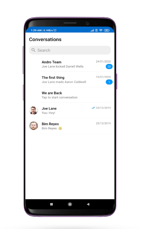 CometChatConversations is a custom RecyclerView which will help you to display a list of all the users and groups in which the logged-in user has made any conversation.