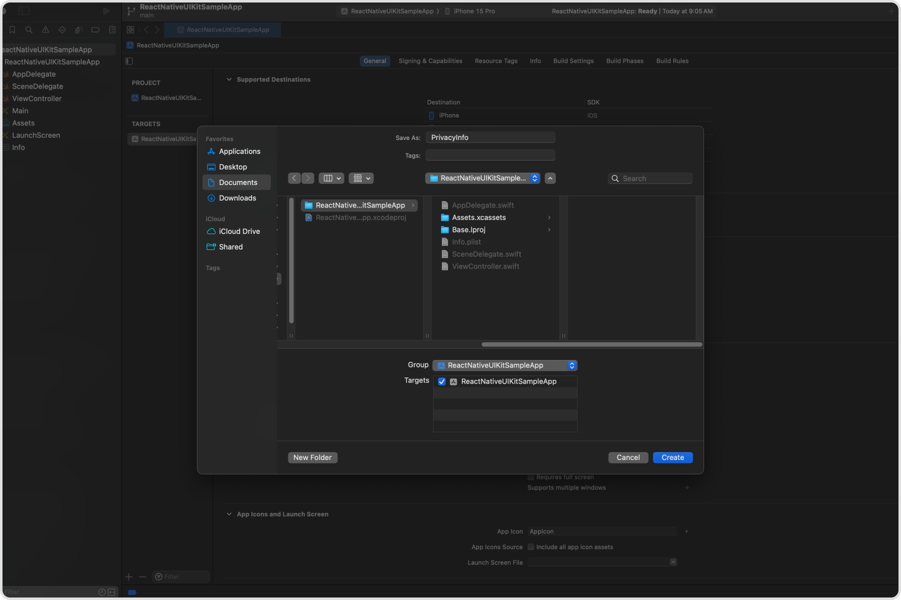 Scroll down to the Resource section. Select the App Privacy file type, click